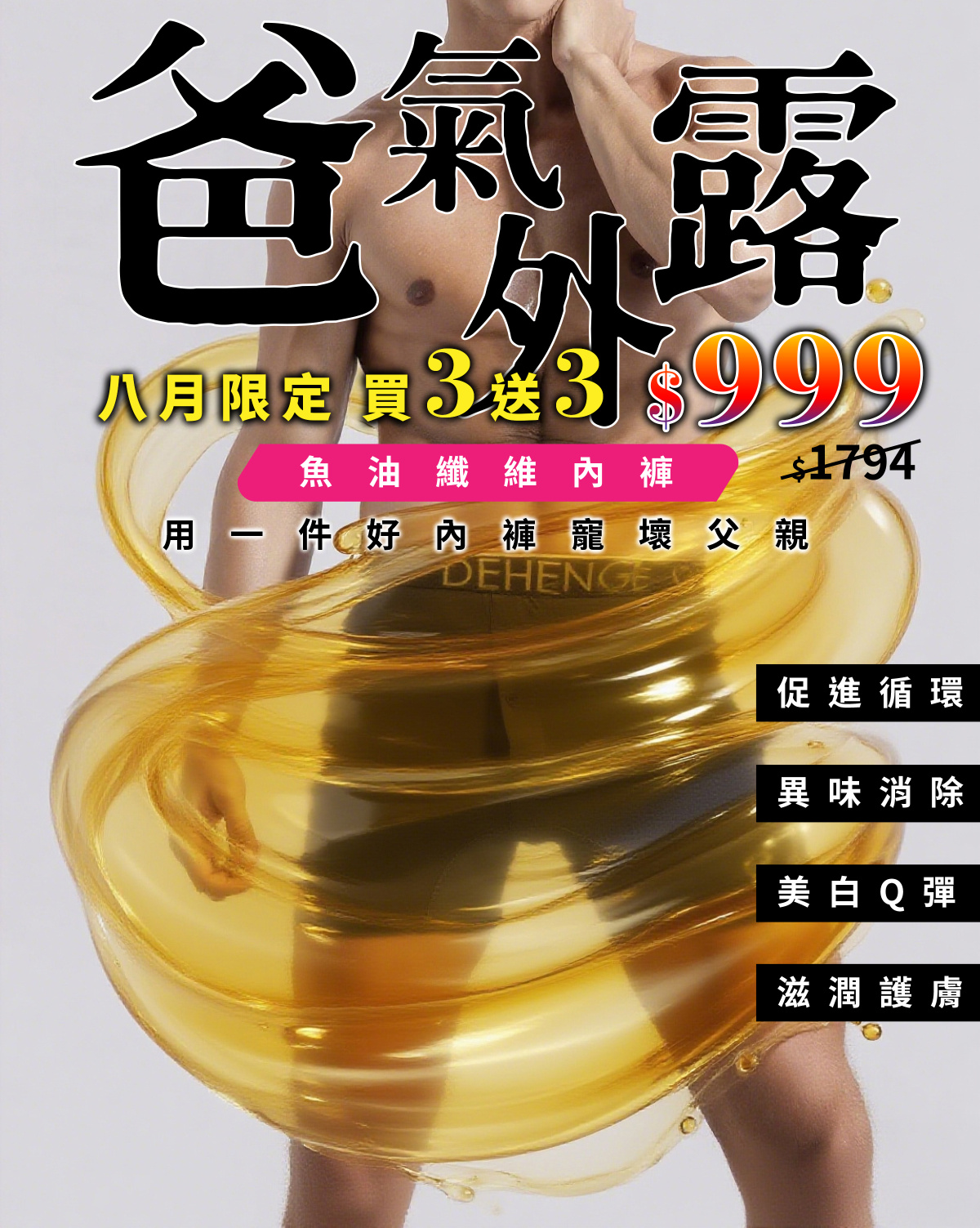 父親節買三送三【DEHENGE】魚油纖維內褲 藝人愛穿/外銷指定品牌