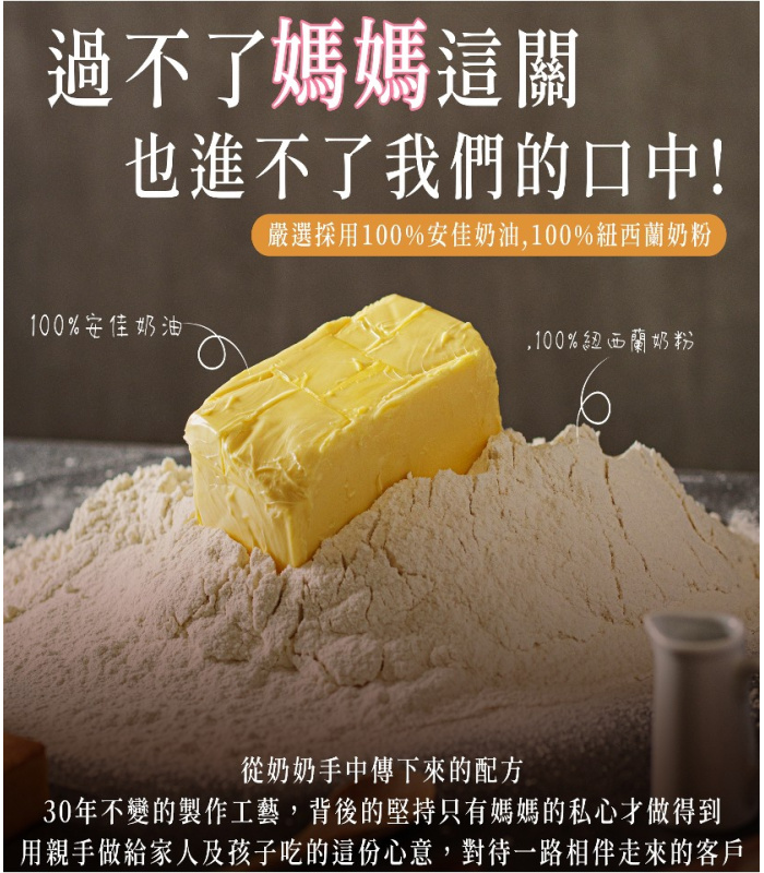 過敏源聲明:本產品含過敏原物質為含麩質的穀類,奶製品