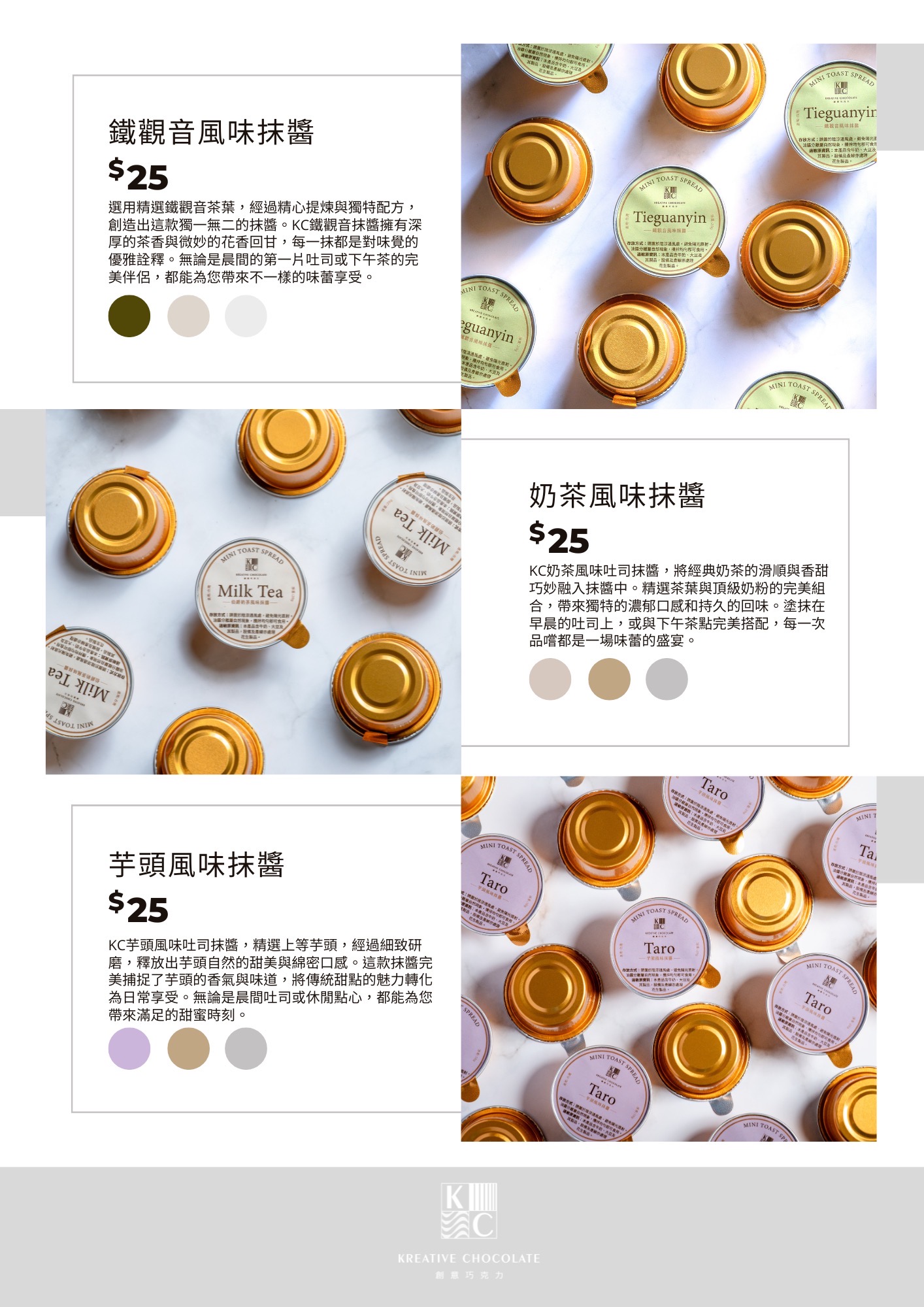 - 鐵觀音風味抹醬,將茶葉的香氣和口感完美地提煉出來,香氣濃郁、回甘悠長。